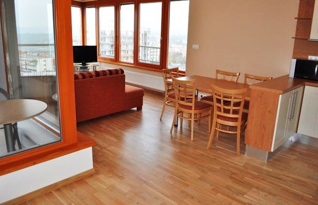 Dovolujeme si Vám nabídnout k pronájmu velmi pěkný, světlý byt 3+kk, nacházející se ve 12. patře čtrnáctipatrové novostavby v Praze - Krči, nedaleko stanice metra C -Budějovická, v Rezidenci Rozhledna. K bytu o výměře 72 m2 patří balkon, garážové stání v suterénu domu (za příplatek 3.000,-Kč/měsíc) a prostorný sklep. Je pronajímán kompletně zařízený, kuchyňská linka vybavena moderními spotřebiči (lednice, sklokeramická varná deska, trouba, myčka, mikrovlnná trouba), v obývacím pokoji sedací souprava s jídelním stolem a vstupem na balkon, dvě ložnice, v chodbě vestavěné šatní skříně. V koupelně s vanou je pračka, toaleta samostatně. Na podlahách kvalitní dřevěné podlahy, dlažba. K dispozici je satelit, kabelová TV, internet, klimatizace, rolety. Rezidence Rozhledna je projekt s krásným výhledem, recepcí a skvělou dostupností. Doporučujeme náročnějším klientům.